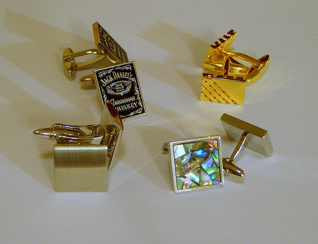 For men (the groom and his groomsmen), cufflinks are also important accessories to keep in mind. The groom usually gives his groomsmen and best men a pair of cufflinks each. He can also give his own father and future father-in-law a pair each.