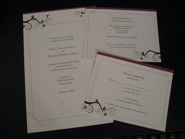 Last but not the least, your wedding invitations must have all the necessary and important information. These refer to the date and time of your wedding, venue of the ceremony and reception, and of course your name. Others are option to add such as your personal message to each other, a love quote or note to parents. However, do not forget to include “RSVP” so every person who receives your invitation is obliged to give their responses whether they can come and witness your wedding or not.